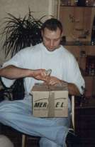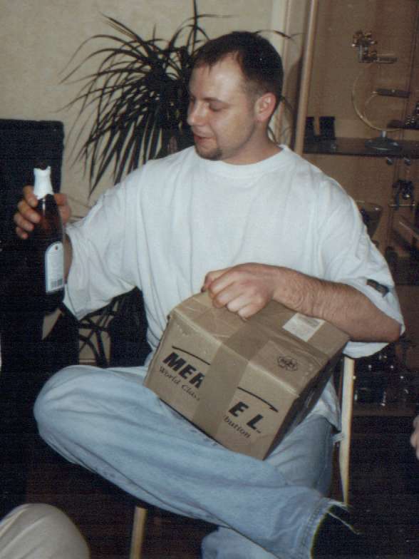 "Hmm.... erst Bier austrinken oder erst auspacken???" |