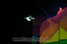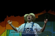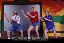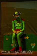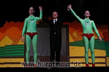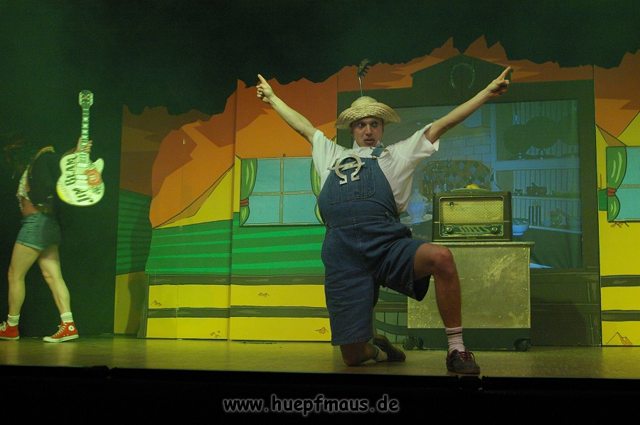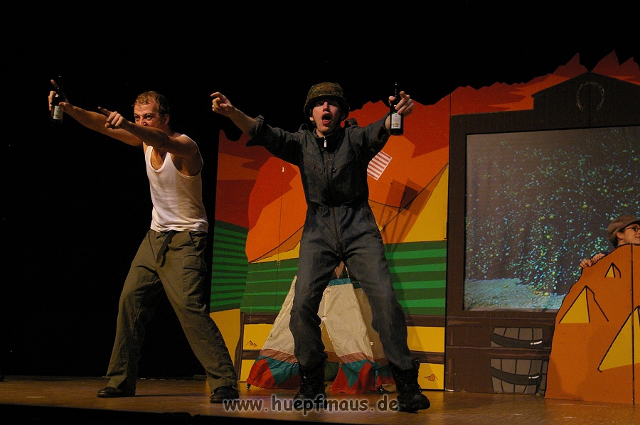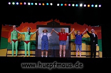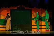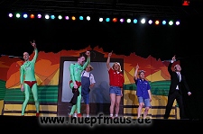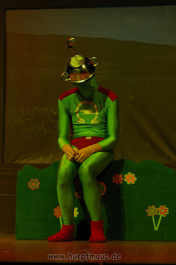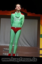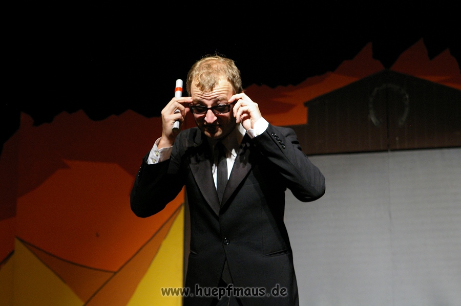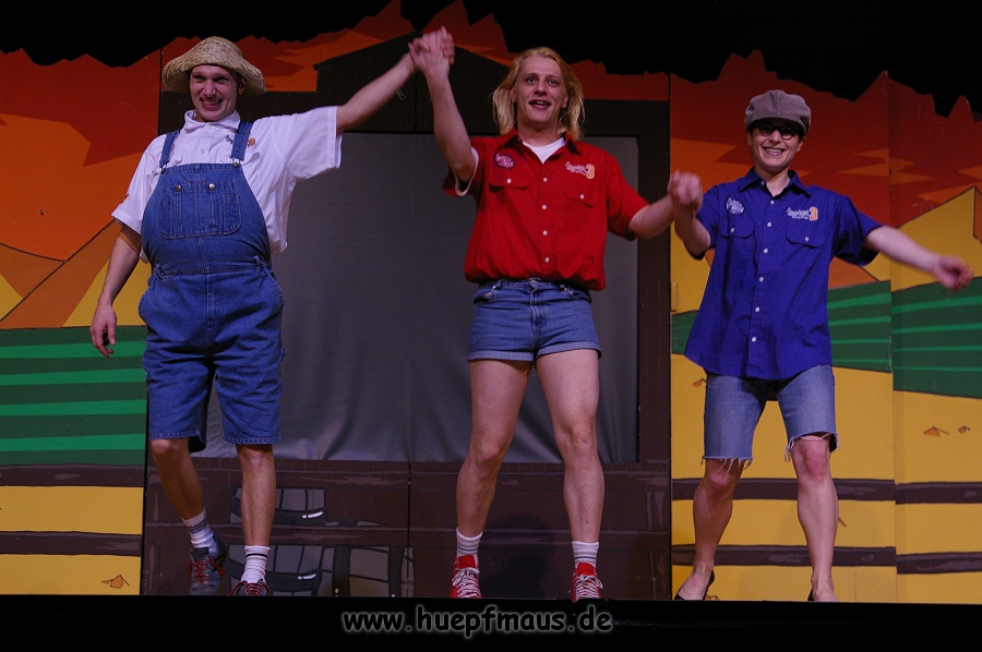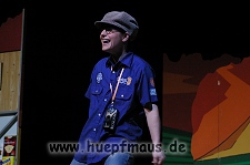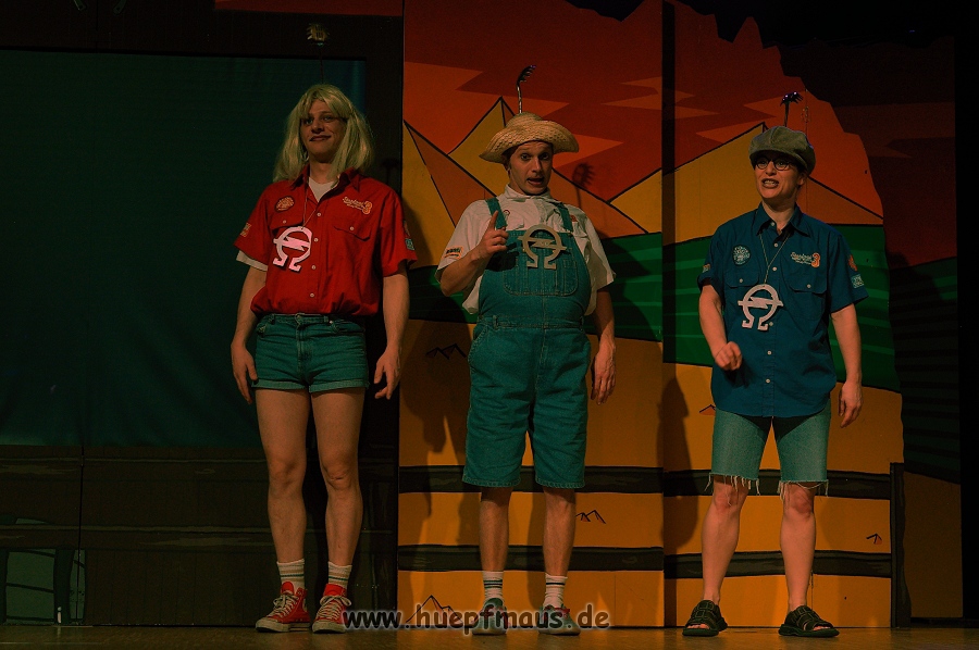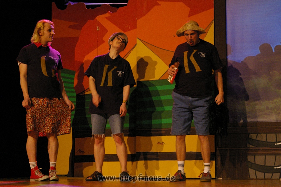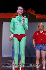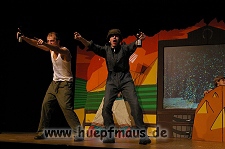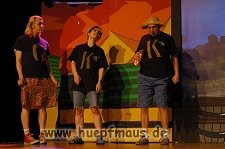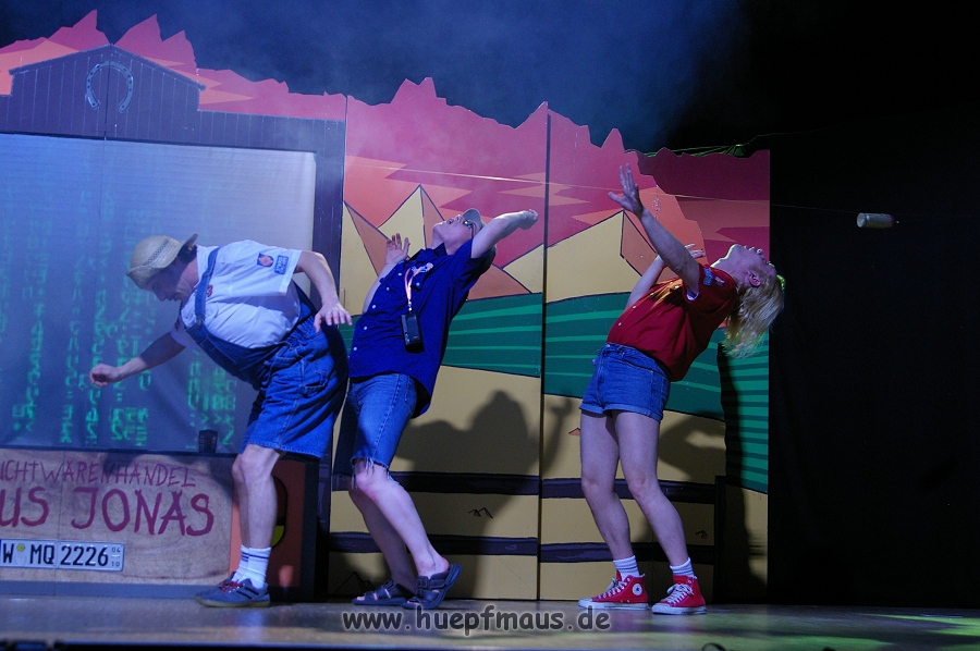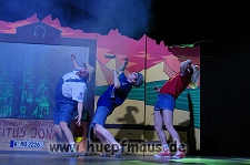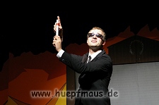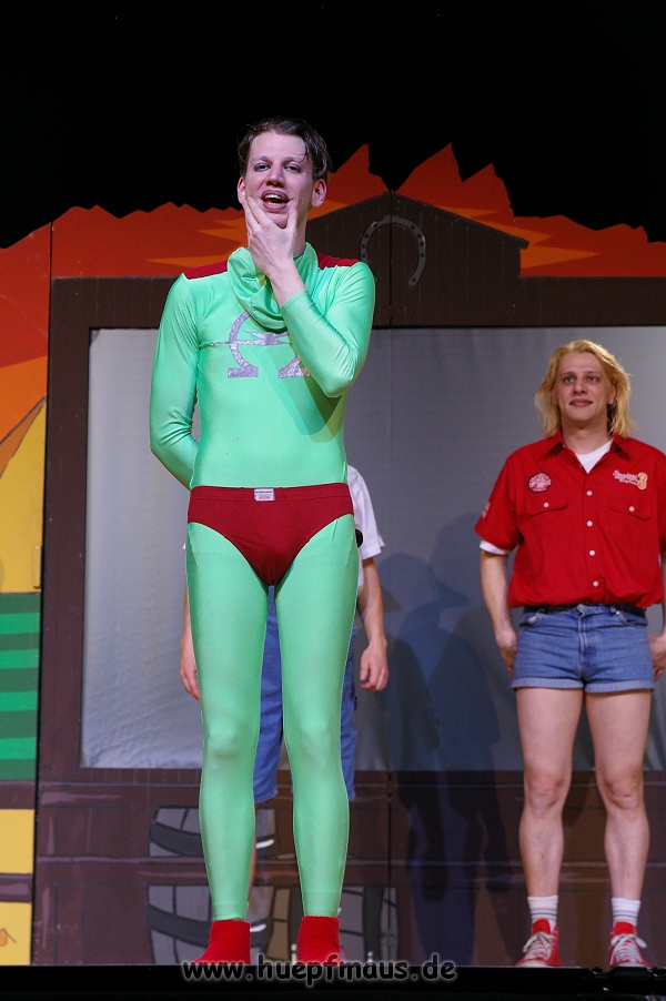 Und das zu recht, denn die Jungs und Mädels waren mal wieder absolut klasse. Auch wenn die Folge „Die Drei ??? und die bedrohte Ranch“ bei vielen Fans nicht ganz so beliebt ist, hat das VPT mal wieder ein Meisterwerk daraus gemacht. Manta –ein auf der Erde vergessener Außerirdischer vom Planeten Omega- spazierte als zweiter Justus immer wieder auf die Bühne, dabei wollte er doch am liebsten nur „nach Hause telefonieren“. R2D2 und C3PO hatten einen Gastauftritt und auch die Crew der Enterprise durfte natürlich nicht fehlen. Der Ideenreichtum des VPT scheint unerschöpflich, ihnen fällt zu jeder Situation wieder etwas neues ein. Dennoch werden alte Klassiker, die einfach zu jedem Stück gehören, nicht vergessen: TKKG, John Sinclair und natürlich die Matrix-Szene wurden vom Publikum begeistert gefeiert, ebenso „Paradise City“ von Guns´n´Roses, zu dem die Jungs im wahrsten Sinne des Wortes abrockten.