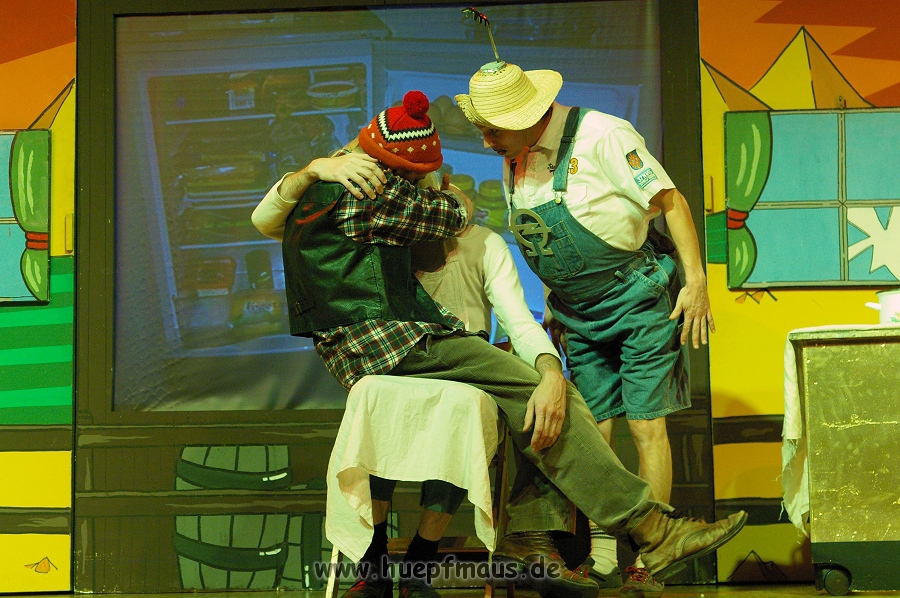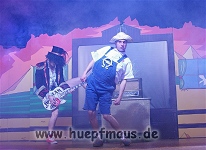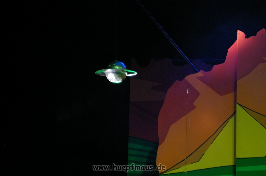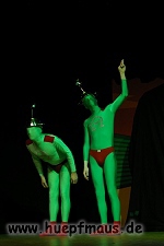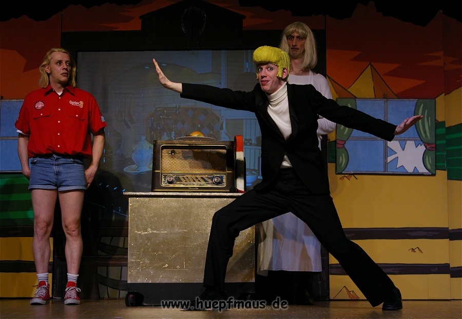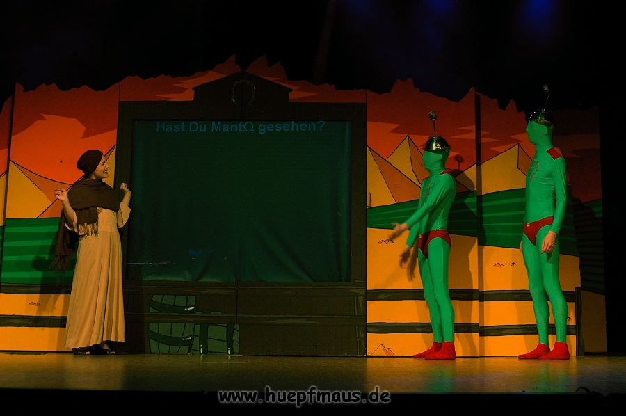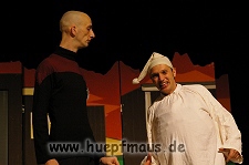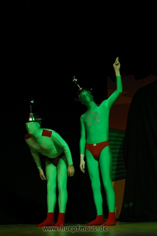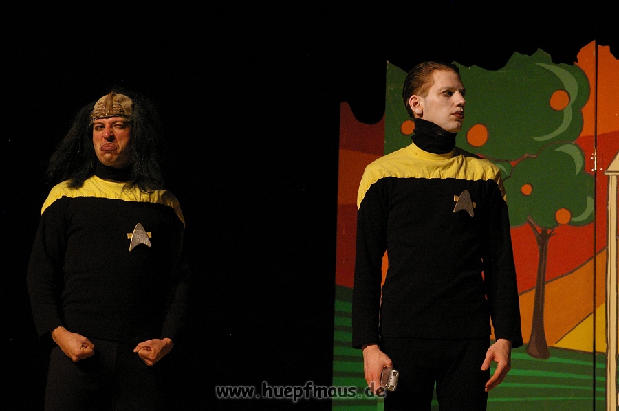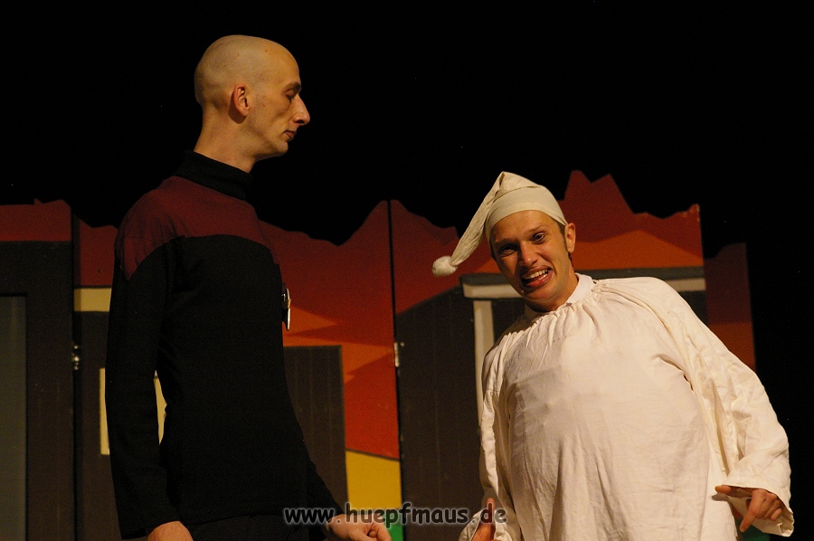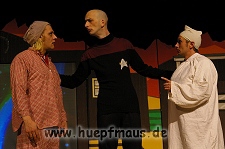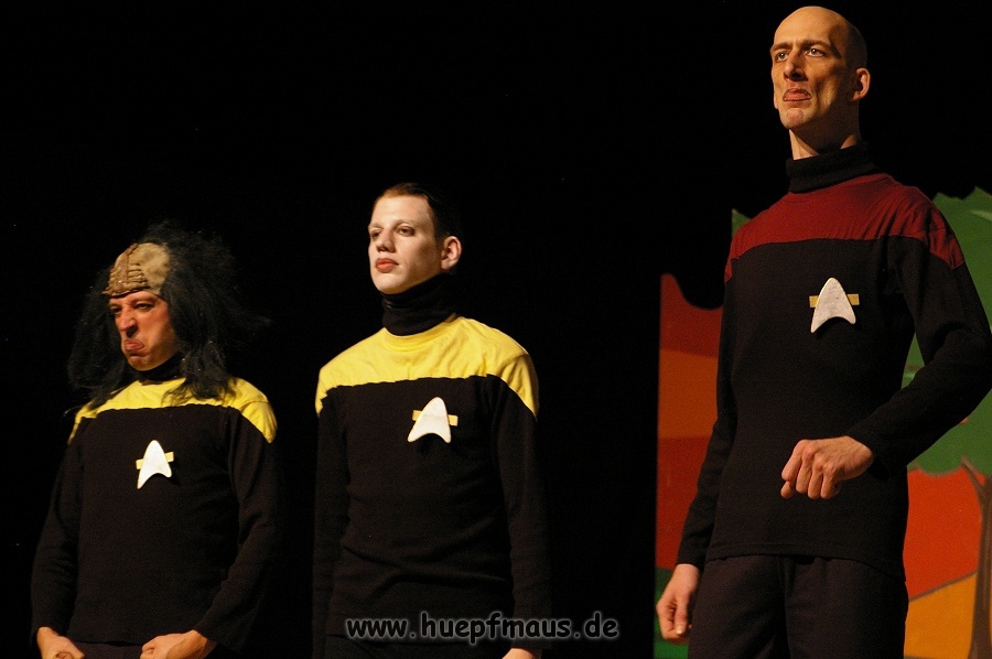 Warum gerade diese Folge? „Wir wollten etwas mit Außerirdischen machen und das war eine der wenigen Folgen, in der welche vorkommen. Daher hat sich das angeboten“ erzählt Sven Blievernicht, der oftmals –obwohl er eindeutig der Größte des Ensembles ist- die Frauenrollen, wie z.B. Tante Mathilda übernimmt (absolut großartig der Auftritt in einem der früheren Stücke als Pamela Anderson in knallrotem Baywatch-Badeanzug).