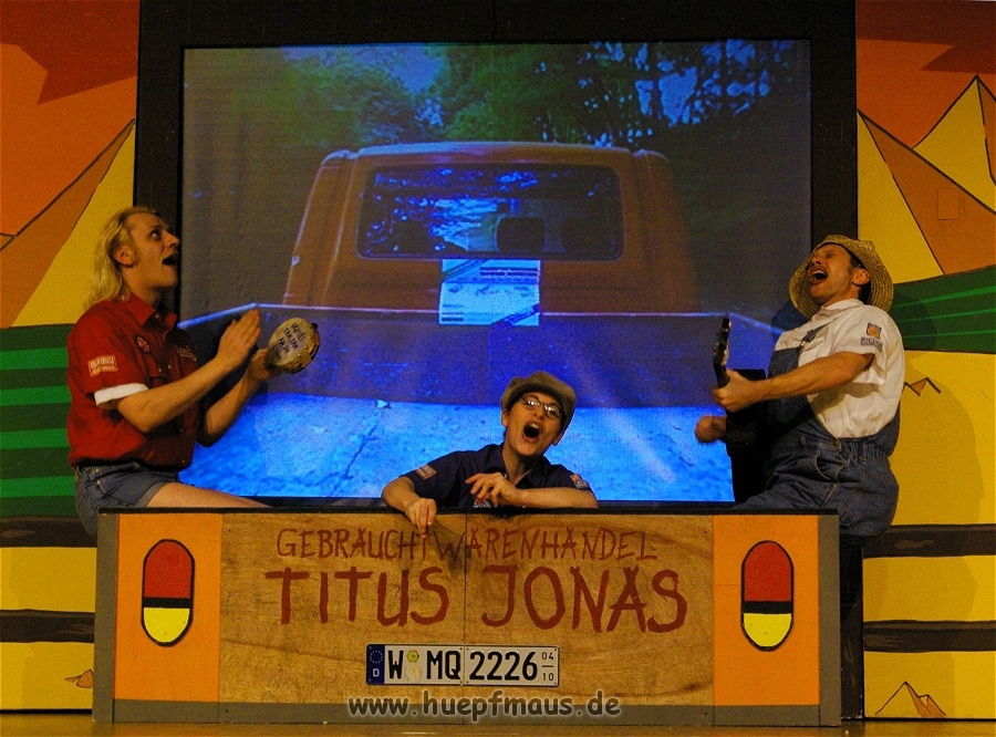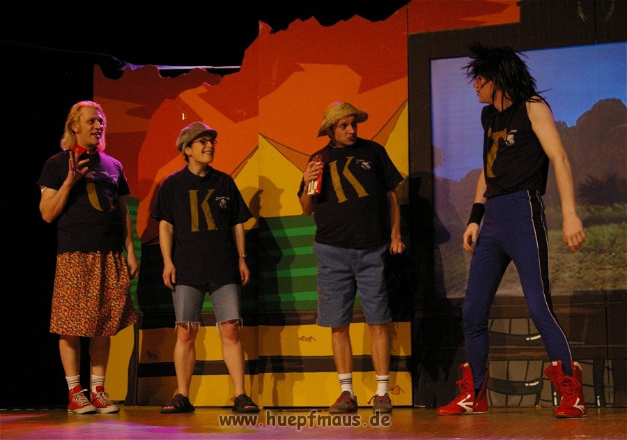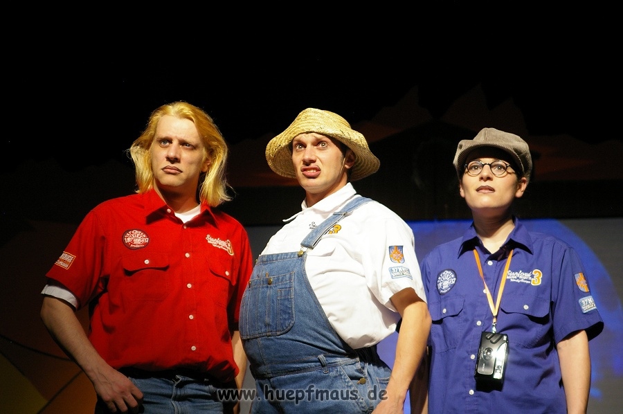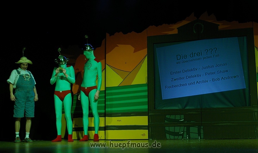 Am 01.11.08 war es so weit: das neue Stück des Vollplaybacktheaters feierte Premiere. Und das wieder einmal mit Erfolg. Nachdem das Ensemble aus Wuppertal im Frühjahr noch mit der „Den rechten Fuß vor, das linke Bein nachziehen“-Tour – John Sinclair in „Das Horror-Schloss im Spessart“ – unterwegs war, steht nun wieder eine Folge der Drei ??? auf dem Programm. Diese Stücke sind bei den Fans besonders beliebt, denn hier hat das Vollplaybacktheater seine Wurzeln. Dr. Thomas, Supaknut und Britta Lemon als Justus, Peter und Bob sind einfach unschlagbar.